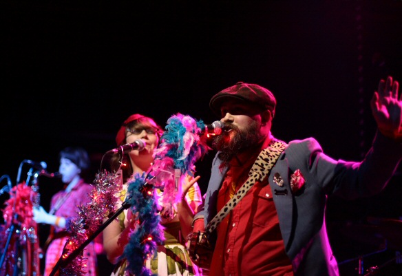 Headlining were the Bobby McGee’s, who are a band who could only really exist somewhere like Brighton. As much cabaret as music, with a dark, dark streak that runs through them, but at the same time a veneer of wide eyed innocence. Twee-core, they call it. You may have seen the Bobby McGee’s around town before but not as you would have seen them last night. The story is that Jimmy McGee was talking to someone at Jazz FM, and somehow ended up telling them that he had a Swing Band (he didn’t), and consequently got this non-existent band booked for a Jazz FM Christmas Party. The band had to move quickly, and have bolstered their members, and last night brought along a troupe of swing dancers. (note to Native Roses – that was what a troupe really looks like!). In their set which barely lasted three quarters of an hour, they rattled through dozens of songs, each of which showed a different side to their wit and charm.