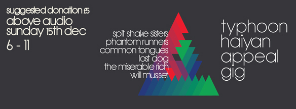 Before I mention any other gigs this weekend, I want to give a special mention to a charity gig that’s taking place on Sunday afternoon / evening at the Above Audio, put on by Les Enfants Terribles in aid of the Typhoon Haiyan Relief Project, supporting those affected by the recent catastrophic weather in the Philippines. They’ve got a great line up, including The Miserable Rich (who are re-forming as a one off for this gig), The Phantom Runners, Spit Shake Sisters, Common Tongues, Lost Dog and Will Musset. There’ll also be a raffle and mince pie sale to raise more money for a deserving cause.