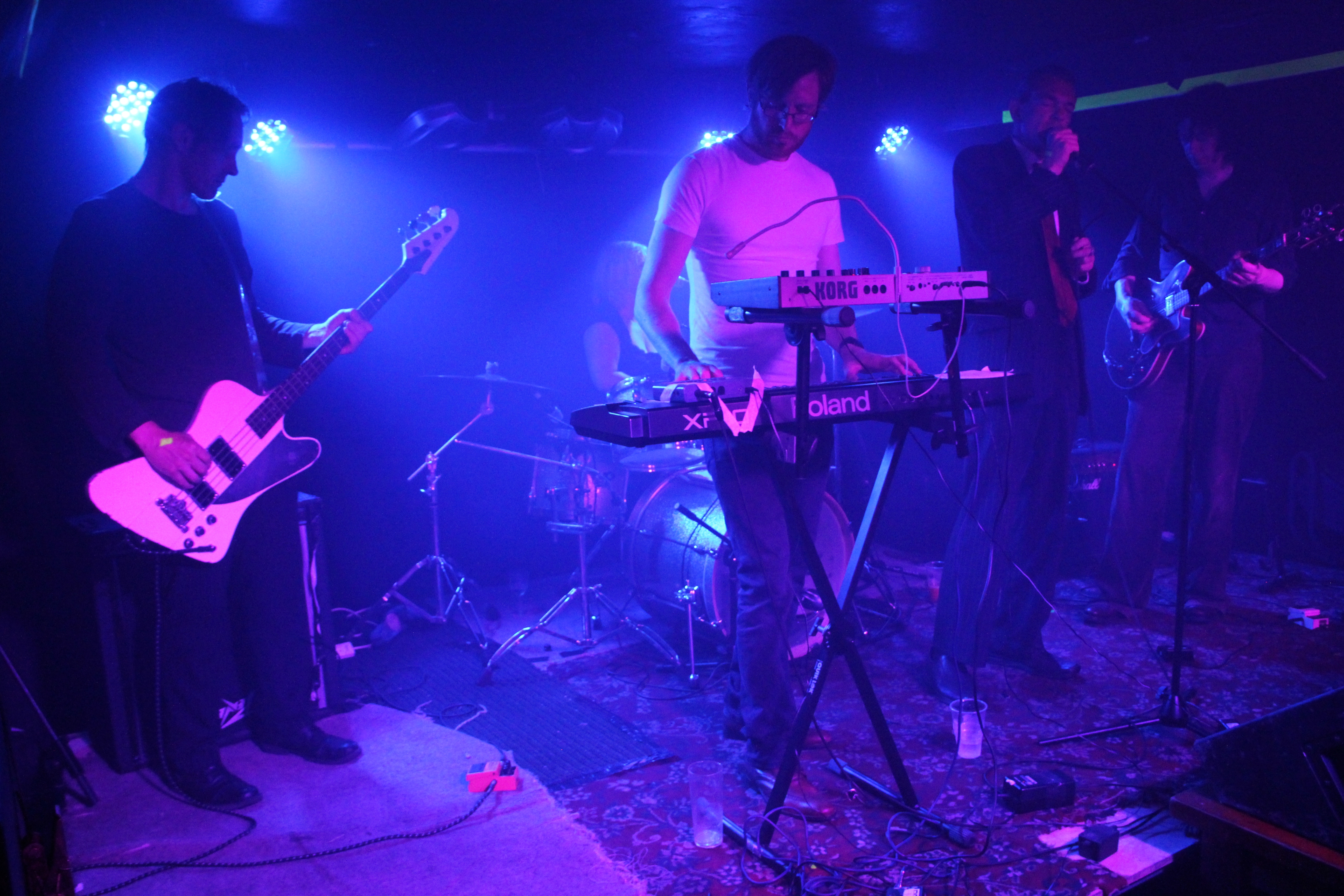 Lead singer Tim Leopard started the evening in dark shades that made me think of Andrew Eldritch and Sisters of Mercy, but musically the band had a lighter touch and more variety. Dave Hughes on keyboards and Steve Barber on guitar were constantly inventive, the shadowy presence of Chris Anderson (now Crayola Lectern) on bass and the powerhouse of Emily Powell on drums never let up the rhythm.